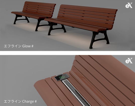 照明(Glow)と充電(Charge)の機能を、既存のエフラインベンチの部材交換というかたちで取り付けることが可能です。