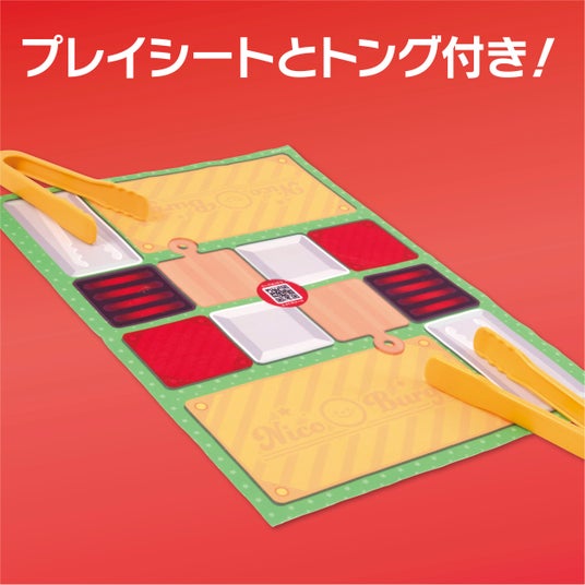 プレイシートとトング付き!プレイシートになるクロスと2つのトング付き! プレイシートの中央にはゲームにアクセスするQRコードがついています。
