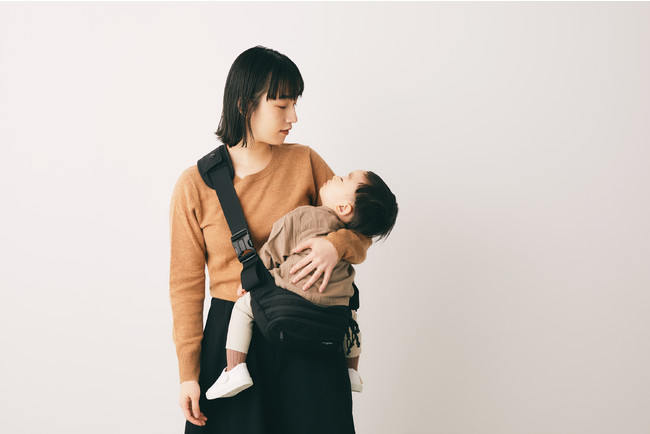 Hugoo(ハグー)はショルダーバッグ型のヒップシートになっており、長時間の抱っこでも腰への負担もかかりづらく、片手抱っこをサポートします。