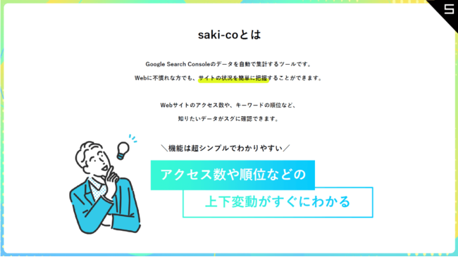 このようにsaki-coは、集計に十分な時間をさけないマーケターや、Google Search Consoleの使い方がわからない方に向けたツールです。