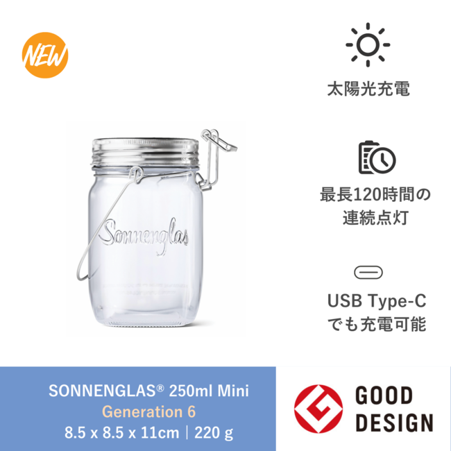 世界で300万個以上を販売するソーラーランタン「ソネングラス(R)️(SONNENGLAS(R))」は、新モデルのGeneration 6 を2023年1月18日(水)より予約販売いたします。また、瓶から独立したソーラトップで単体でも辺りを照らす光源になる“SOMO(TM)️”も同日より新発売します。