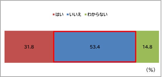 という質問に対して、「はい」と回答した人が31.8%、「いいえ」と答えた人が53.4%となった。