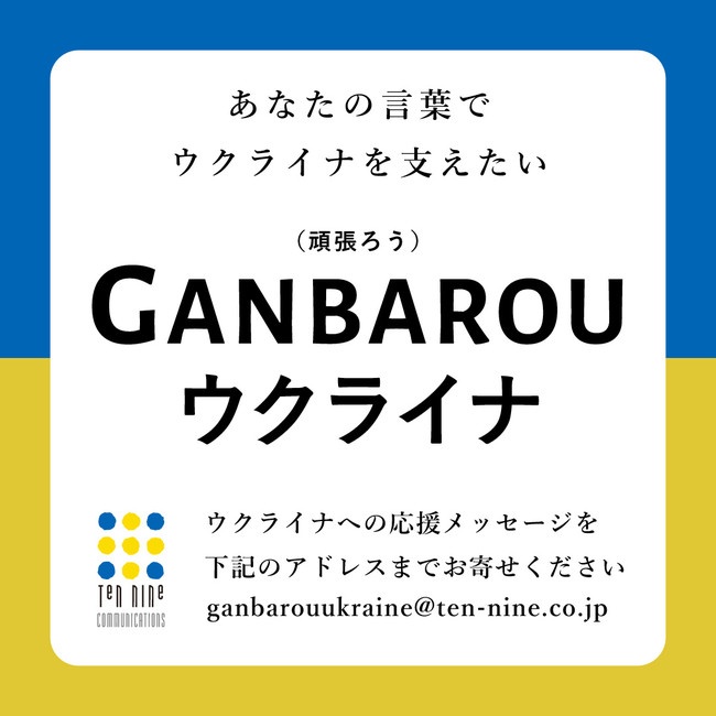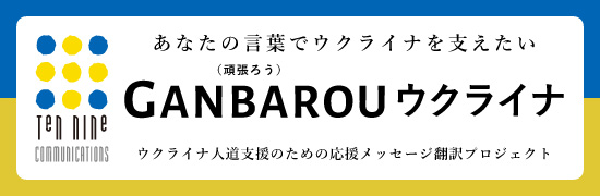 株式会社テンナイン・コミュニケーション(本社:東京都港区、代表取締役:工藤 浩美)は、ウクライナ人道支援のための応援メッセージ翻訳プロジェクト「GANBAROU(頑張ろう)ウクライナ」を2022年3月22日より開始いたします。