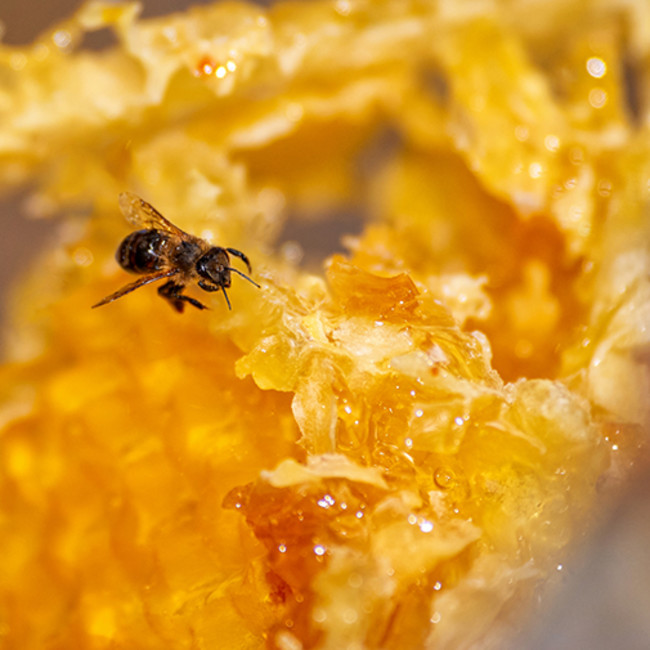ミツバチの体内から分泌される「蜜蝋」を使用した蝋引き帆布を採用しました。蜜蝋はパラフィン(石油系)と比べて、ベタつきが少なく蝋塗りしやすいため、お手入れが簡単です。
