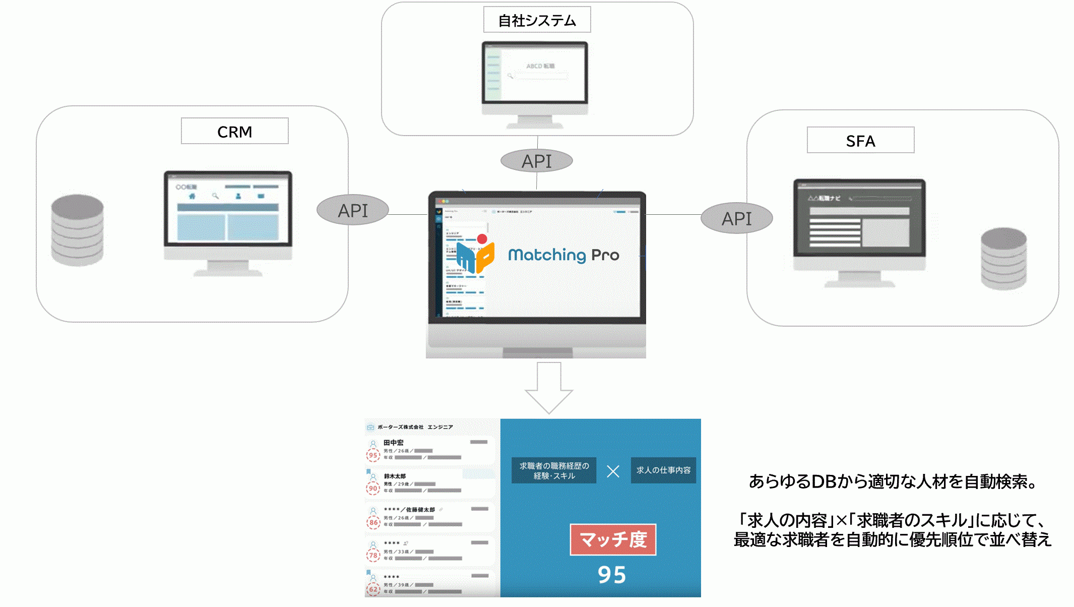 あらゆるDBから適切な人材を自動検索。「求人の内容」×「求職者のスキル」に応じて、