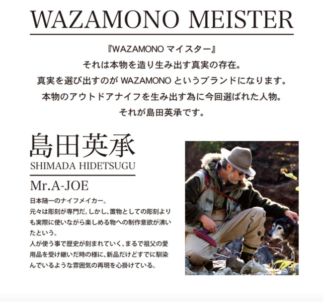 島田氏は WAZAMONO プロジェクトチームに参加する機会を得ると共に、アウトドアナイフの製作を決定。