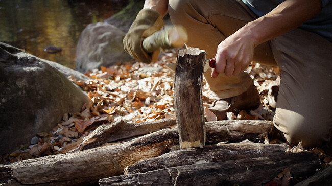 十分な刃の厚みとハンドル手元に設けられた「鈍角な骨割り刃」構造によって、太めの薪でも自然な力で割る事ができます。