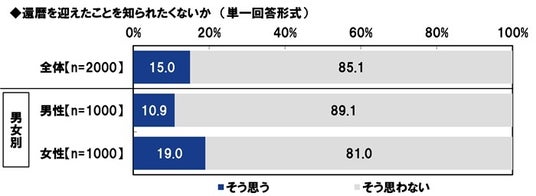 - 「還暦を迎えたことを他人に知られたくない」男性では1割、女性では2割に