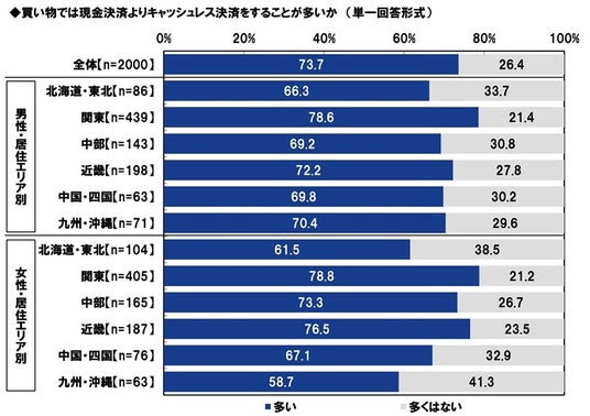 - 還暦人の7割半が“キャッシュレス派”、関東エリアでは男女ともに約8割