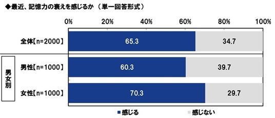 - 「最近、記憶力の衰えを感じる」男性では6割、女性では7割