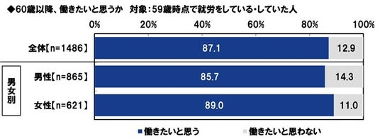 - 「還暦を過ぎても働きたい」働く還暦人の約9割 働きたい理由1位は「生活費が不足するから」