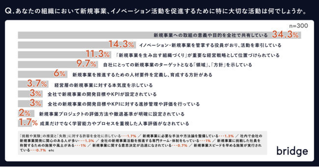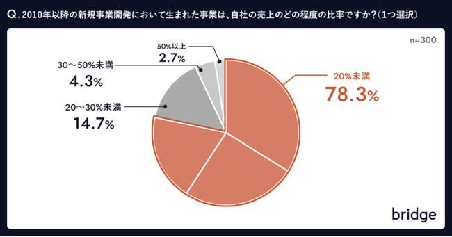 株式会社bridge(東京都渋谷区、代表取締役:大長伸行)は、新規事業の創出や組織変革に対するコンサルティングサービスを提供するにあたり、全国の新規事業開発実施企業の正社員に調査を実施しました。
