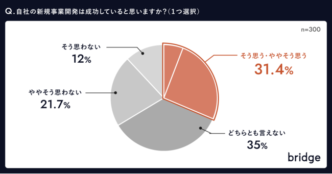 ・「自社の新規事業開発は成功している」と31.4%が評価。
