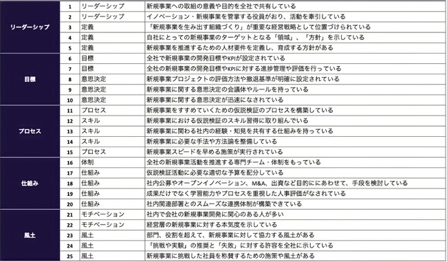 ※bridgeが定義する「新規事業を生む組織の25要素」