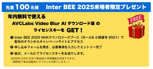 2025年内無料で「AVCLabs Video Blur AI」ダウンロード版をお試しいただけるライセンスを、来場者限定特典として提供します。