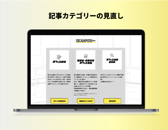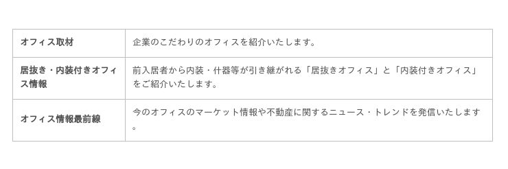 記事を「オフィス取材」「居抜き・内装付きオフィス情報」「オフィス情報最前線」の3カテゴリーにいたしました。