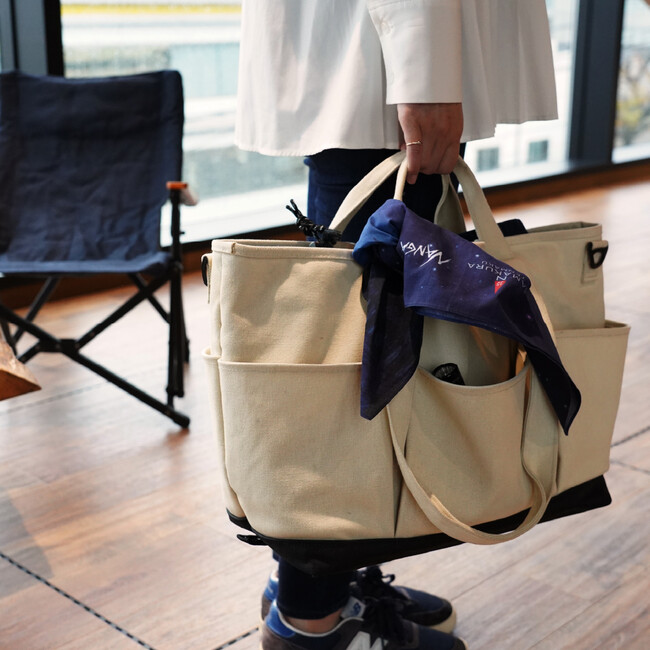 スナップボタンで留めることもでき、キャンプ、バンライフなどのアウトドアでも活躍します。