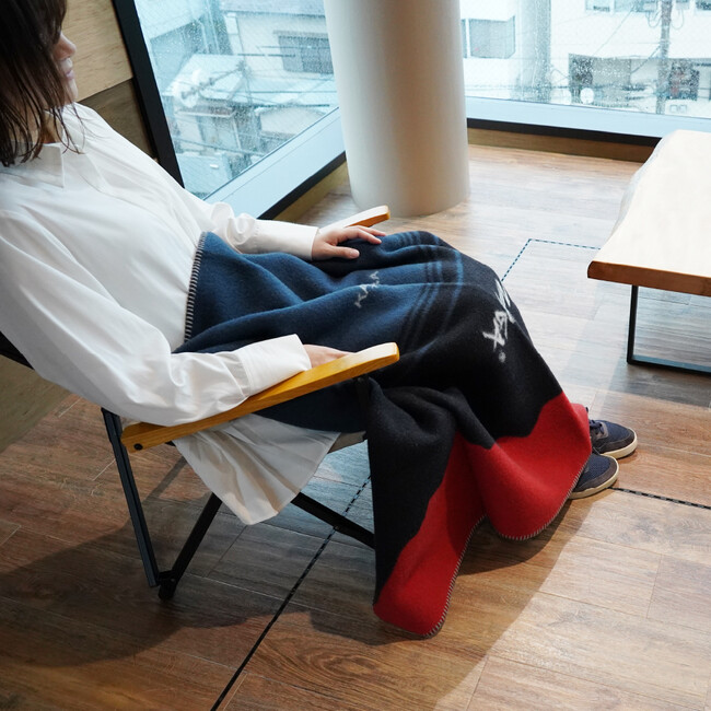 丈夫なコットン素材を縦糸に、汚れに強く保温力に優れたウール素材を起毛面にすることで、強度と防寒性を兼ね備えた質感の高いブランケットに仕上げました。