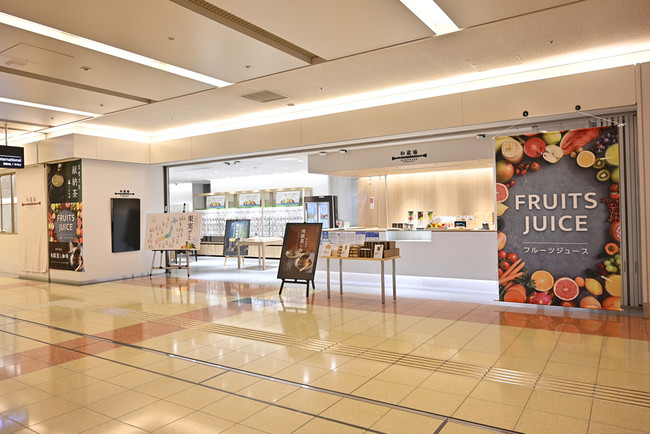 店内では、国産食材への愛と応援がつまったJA全農“ニッポンエール”ブランドの加工品(果実グミ、ドライフルーツ、ジュレショコラ)や全国各地のフルーツジュース、お茶を販売し、物販の側面からも地域振興・産地支援を図ります。PRスペースでは、メーカーや自治体によるPR展示をいたします。またメニューと連動した特産品販売や地域の観光名所を紹介など各種情報発信も実施いたします。