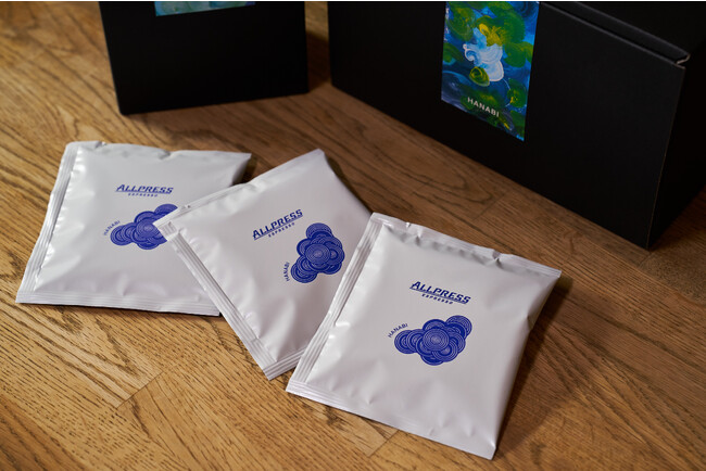 HANABIの販売に合わせて数量限定のドリップバッグも登場。お湯を注ぐだけで簡単にHANABIを楽しむことができるこのドリップバッグは、ご自宅やオフィス、アウトドアはもちろん、大切な人へ贈るプレゼントにもぴったりです。東京ロースタリー&カフェと虎ノ門カフェ、オンラインストアでは、ギフト用のスペシャルパッケージもご用意しています。
