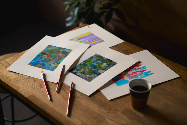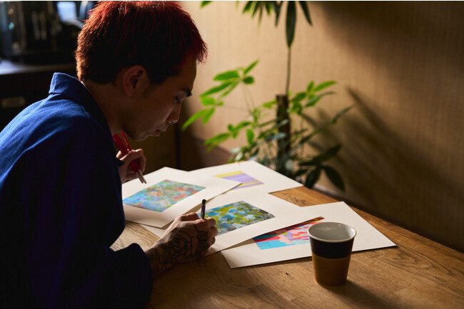 HANABIのために描かれた作品は全部で4枚。このうち昼と夜の花火をイメージして描かれた2つの作品がリテールラベルとなりました。東京ロースタリー&カフェと虎ノ門カフェではHANABIの販売期間中、この4つの作品の原画を展示いたします。