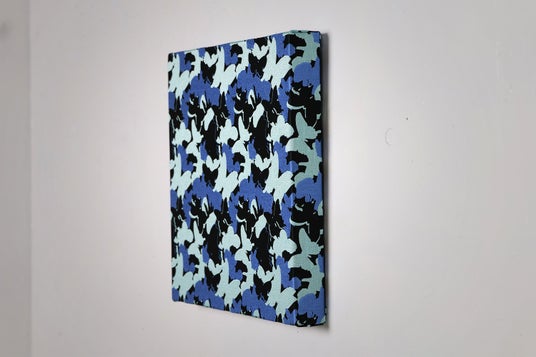 「Butterfly Camouflage」作品を見る視点により、背景だと思っていた部分が蝶や花にみえるようカモフラージュ柄を作っています。物事を多面的な思考でとらえることの大切さを表現した作品です。