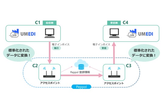 株式会社シナプスイノベーション株式会社シナプスイノベーションは、企業間取引プラットフォーム「UM EDI」が、デジタルインボイスの標準仕様Peppol形式での送受信に対応することを発表します。これにより、Peppol形式に対応したデジタルインボイスの送受信がワンクリックで簡単にでき、基幹システムへとスムーズに連携することができます。