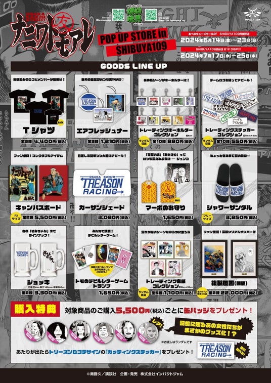 株式会社インパクトジャム(本社:東京都文京区、https://impact-jam.com)より、『「ナニワトモアレ」POP UP STORE in SHIBUYA109』の開催が決定いたしました。
