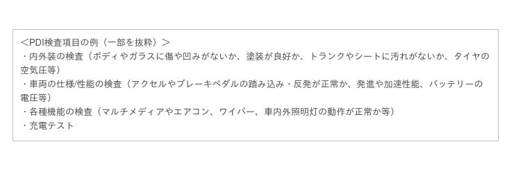 (※1)PDI(Pre-Delivery-Inspection)センターとは、各社が独自に定める品質検査や日本の保安基準への適合確認など、納車前点検を行う専用施設のこと。