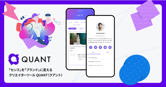 QUANT(クアント)は、「Quantify your Talent(個人の才能を数値化する)」というコンセプトのもと、個人の執筆した記事やSNS投稿のマーケティング効果をデータ化し、分析してきました。インフルエンサー等の個人の活動の経済的価値を明らかにすることで、適切な報酬のもとでデジタルマーケティング活動が活性化されることを支援しています。