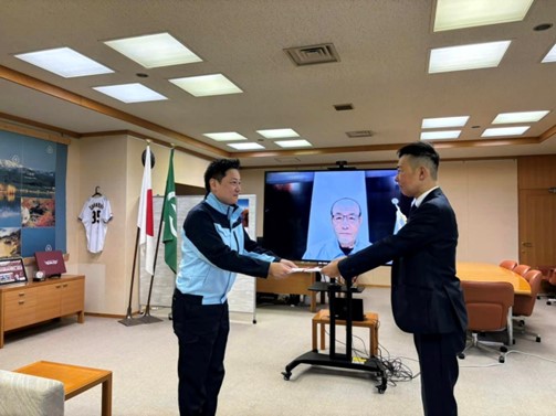 寄贈式では、輪島市 坂口市長にもZoomでご参加いただきました。