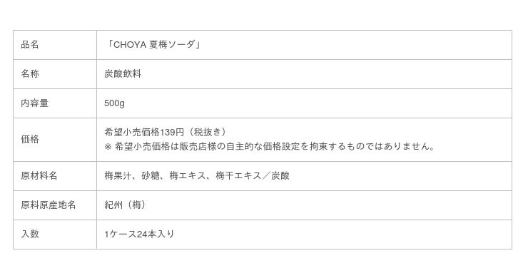 「夏梅」&「夏梅ソーダ」ブランドサイト:https://www.choya.co.jp/products/natsuume_special/