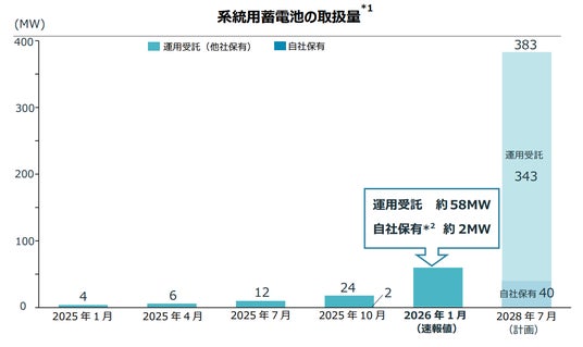 加え、自社保有の系統用蓄電池についても2028年7月までの3年で100億円規模の投資を進め、