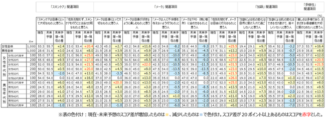 ★化粧・美しさに関する価値観 【現在の推測】と【未来予想】を比較_年代別(一部抜粋)