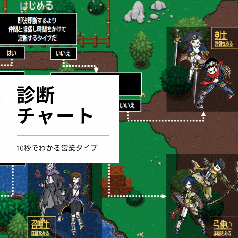 19個の設問に回答するとあなたの営業戦士タイプと属性が判断され、