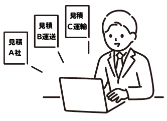 トラクルGO(R)では、オンラインで複数の運送会社から一括で見積もりを取れます。個々の運送会社に電話をかけたりFAXを送ったりする必要なし。オンラインで手配できるので、事務所にいなければならない制約もなくなります。