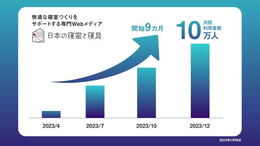 株式会社エムール(東京都立川市:代表取締役 高橋 幸司)が運営する、寝心地と居心地を両立した寝室づくりのためのメディア『日本の寝室と寝具』の月間ユニークユーザー数(利用者数)が、2023年12月度に月間10万人を突破しました。