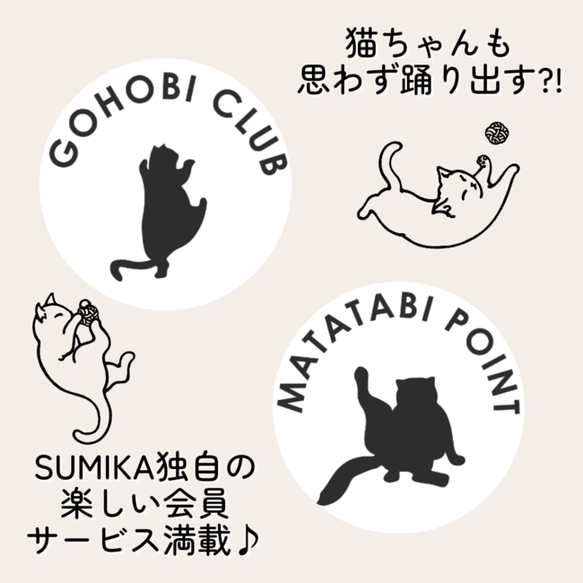 SUMIKA初となる公式オンラインショップのコンセプトは、SUMIKA商品のユーザーさまである「SUMIKAファミリー」の皆さまに、お買い物だけでなく”猫ぐらし”そのものを楽しんでいただくこと。公式ショップならではの、ココでしか手に入らない限定アイテムやサービス、プレゼント特典なども盛りだくさんでお送りする予定ですが、一番力を入れていくのは、やはり「会員サービス」です。