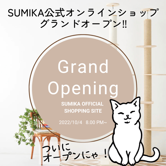 株式会社TIRAMISU(本社:東京都世田谷区 代表取締役:高澤 匡 以下「当社」)が運営する 猫ぐらしブランド「キミとワタシのSUMIKA」(以下「SUMIKA」)は、同ブランド初となるファン待望の公式オンラインショップを2022年10月4日 世界動物の日にリリースいたしました。