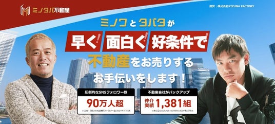 田端信太郎氏と箕輪厚介氏のSNS総フォロワーは90万人超、月間インプレッションは約6500万人で、売主様の物件をXでポスト致します。