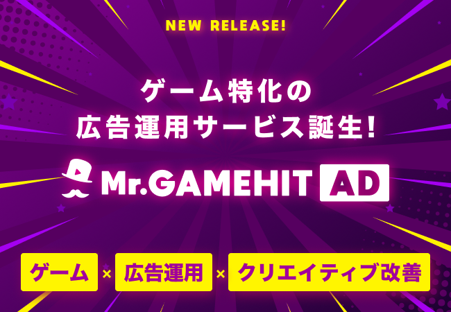株式会社メイラボ(本社:東京都港区、代表取締役:佐藤 真一)は、ゲーム業界に特化した動画広告運用サービス「Mr.GAMEHIT AD(ミスターゲームヒットアド)」を9月12日に正式リリースいたしました。これまで提供してきた動画制作サービスの実績とデータを元に、最適なクリエイティブ改善を行うことで、デジタル広告のAI時代を攻略する新しい広告運用の形を実現します。