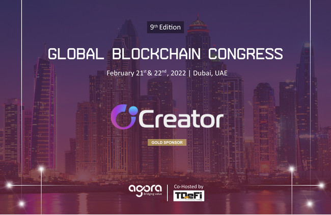 Agora GroupとTDeFiは、デジタルアセットビジネスと投資家をブロックチェーンに関するオープンスペースに集めるというビジョンのもと、2月21日から22日にかけて、「分散型デジタルリアリティ:メタバース、GameFi & DeFiへのゲートウェイ」をテーマに、第9回Global Blockchain Congressを共催します。このイベントは、事前に調整された1対1のミーティングを通じて結びつける、クローズドで招待制となり、高い評価を得て、650人の投資家と200以上のブロックチェーンベンチャーが参加し、プロジェクトに数百万ドルの資金を集めることができたイベンです。V2B Labsのエコシステムにおける最初のプロジェクトのCreatorは、ゴールドスポンサーとしてこのイベントに参加します。このイベントで、V2B LabsとCreatorは、グローバル規模のブロックチェーントランスフォーメーショントレンドを活用するために、ソリューションとビジョンを紹介します。
