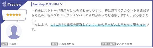 オンラインストレージサービス「Everidays」を運営する株式会社yett(本社:福岡県福岡市、代表取締役CEO:高橋航太)は、アイティクラウド株式会社(本社:東京都港区、代表取締役社長 :黒野 源太)が運営するビジネス向けIT製品・SaaSのレビュープラットフォーム「ITreview(アイティレビュー)」において、「ITreview Best Software in Japan 2025 Rookie of the Year」のTOP10に選出されたことをお知らせします。