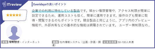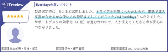 ITreviewでは、5点満点中「4.5点」と高評価をいただいております。(2025/6時点)