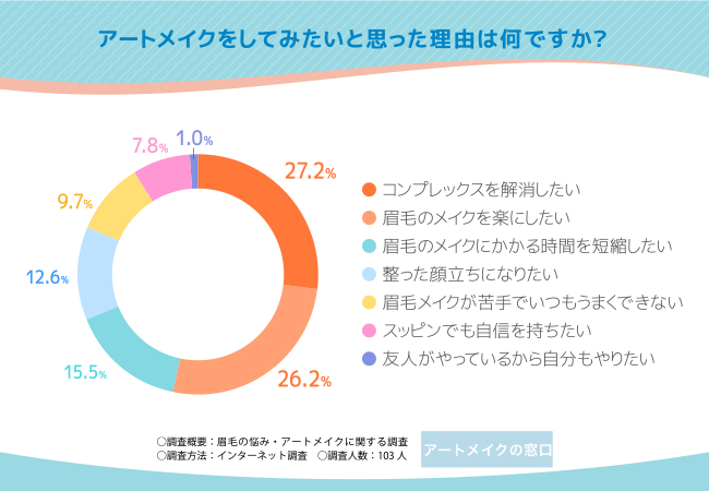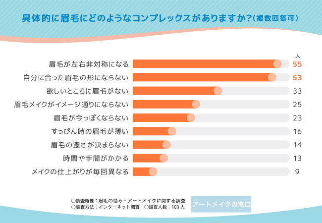 そこで今回、アートメイク比較メディア「アートメイクの窓口」(https://uw21.net/)と共同で、全国の20~60代以上の男女103名を対象に、「眉毛の悩み・アートメイク」に関する調査を実施しました。