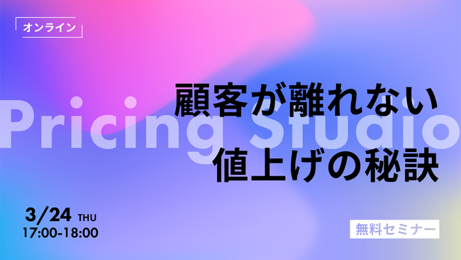 プライシングスタジオ株式会社(本社:東京都港区、代表取締役:高橋 嘉尋)は、オンラインセミナー「顧客が離れない値上げの秘訣」(無料)を開催いたします。