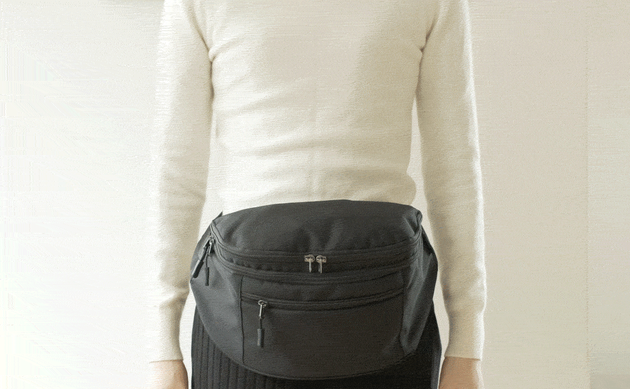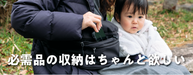 バッグ研究家がモニターさんと一緒に、いろいろなシーンを想定し、改良を重ねること1年。コンパクトにまとまりつつ、しっかりと安心してお子さんを抱くことのできるウエストポーチが出来上がりました。