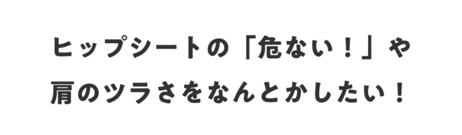 今回リリースした「KANAG hug」は、ヒップシートの「危ない!」や肩がツラくなる悩みを解決したくて開発をスタート。