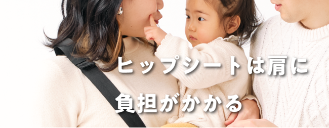 斜めがけショルダーバッグ型のヒップシートは、子どもの体重が片方の肩にズシリ。1~2歳ともなると体重も増えてきて、パパ・ママの肩に負担がかかります。