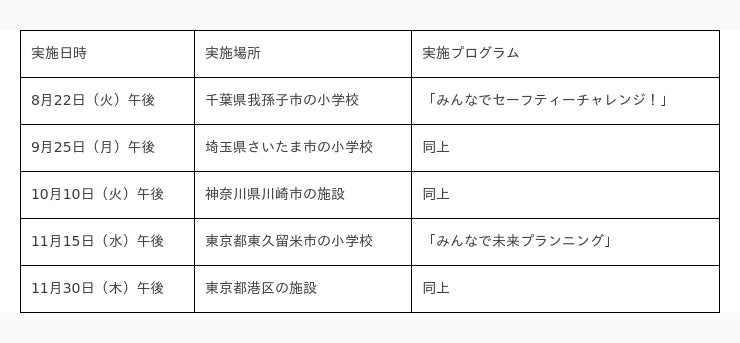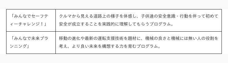 本年は8月22日の第1回を皮切りに、計5カ所の小学校・施設で改良を図った両プログラムを展開していく。各回1時間のプログラムと、実車を用いた約30分の技術デモンストレーション(一部除く)を実施する予定。